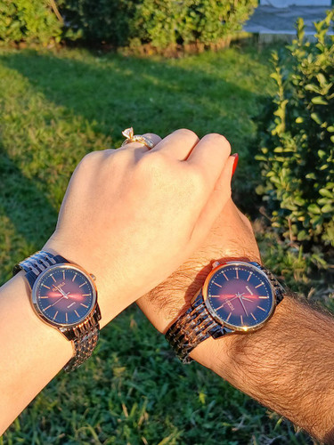 ساعت ست زنانه مردانه بند فلزی رنگ ثابت با جعبه ارسال رایگانناموجود