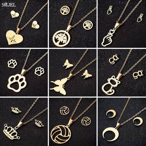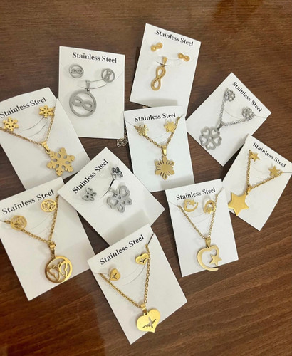 تخفیف ویژه نیم ست استیل رنگ ثابت گردنبند و گوشواره اکسسوری دخترانه و زنانهناموجود