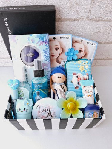 باکس کادویی دخترانه و زنانه اقتصادی پک هدیه فانتزی کادو تولد سالگردناموجود