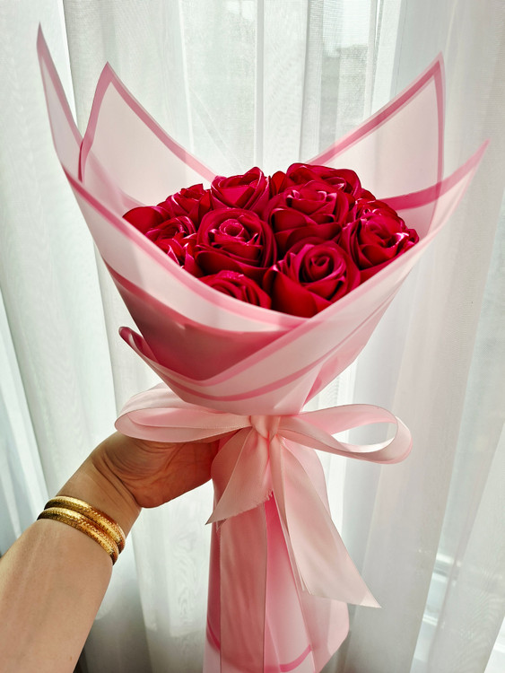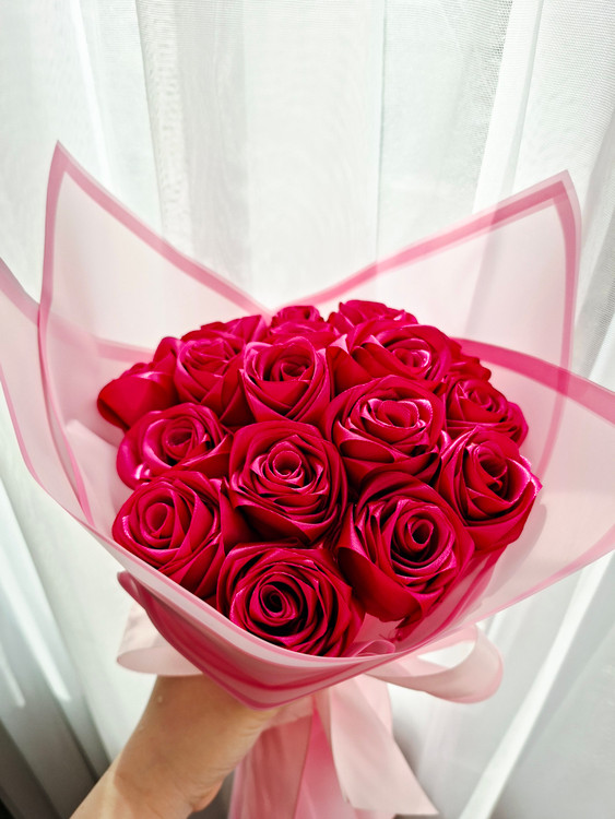 دسته گل رز مصنوعی روبانی ۱۷ شاخه💐✨️