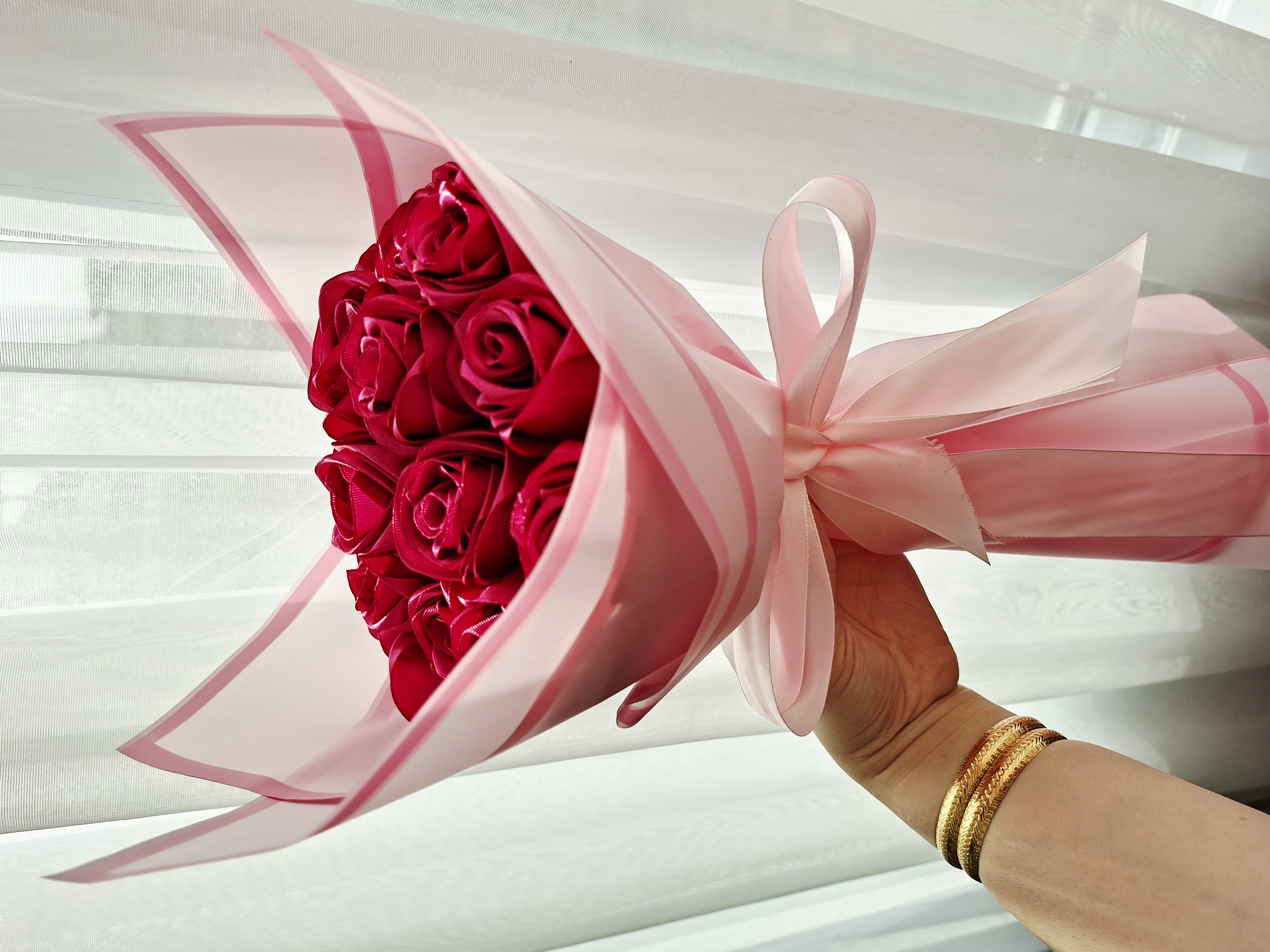 شامل ۱۷عدد گل رز روبانی بهمراه تزئینات