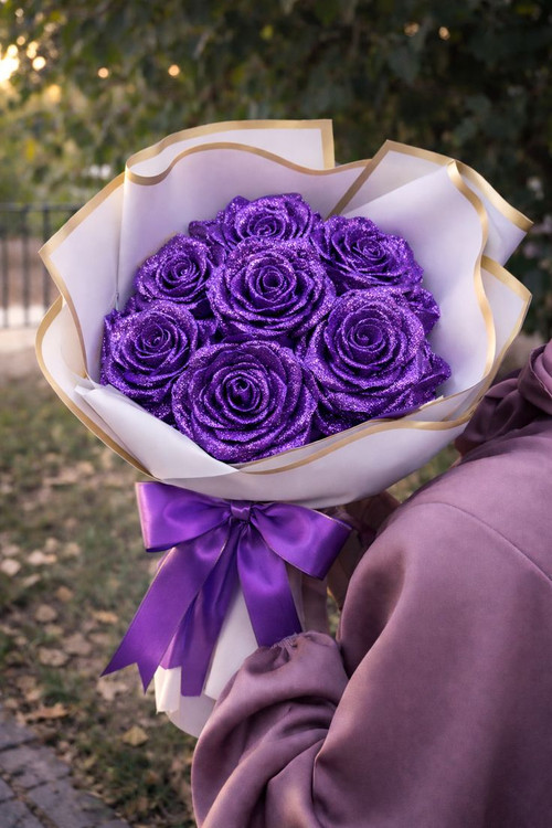 دسته گل رز روبانی ۷شاخه سوپر شاین(اکلیل کاری شده)
