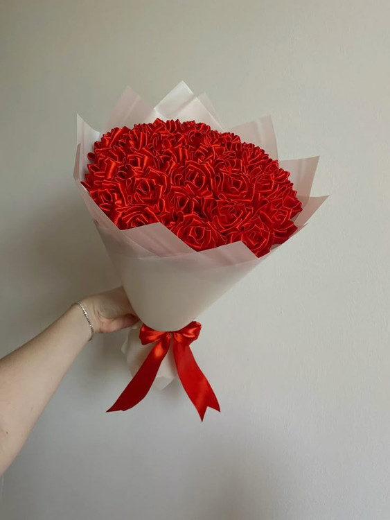 دسته گل ۱۰شاخه ساتن روبانی🌹