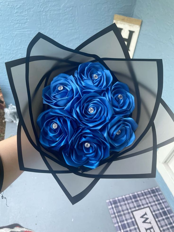 دسته گل رز روبانی ۱۲شاخه💙💐