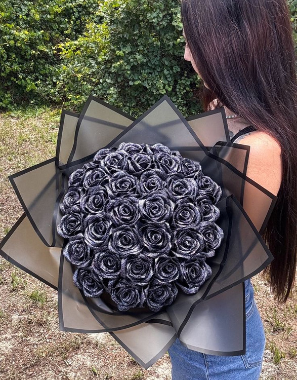 شامل ۲۸ شاخه رز روبانی فول شاین بهمراه تزئینات✨️