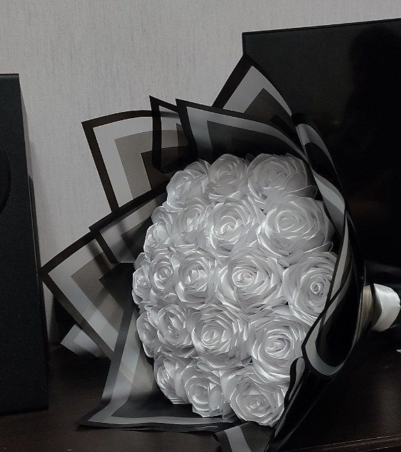 دسته گل رز روبانی مصنوعی ۱۹شاخه🤍🖤