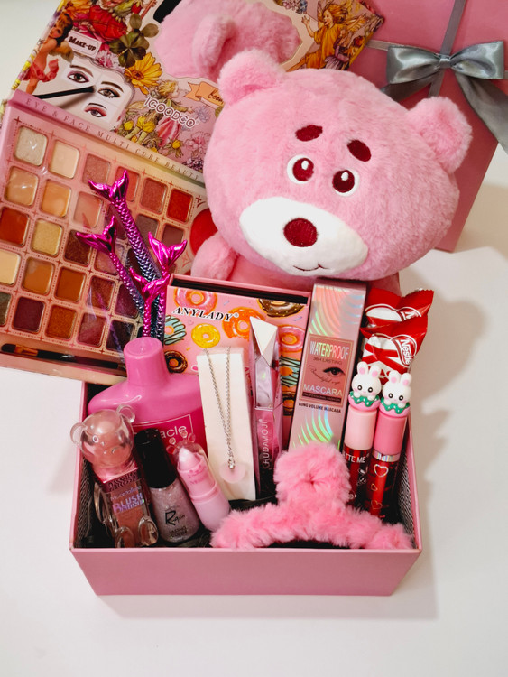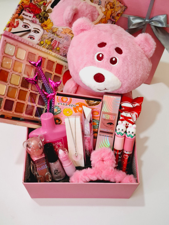 شامل عروسک خرس توت فرنگی، پالت سایه سایز بزرگ اورجینال بارکد دار، پالت سایه کیفی آنی لیدی، برق لب و تینت لب فانتزی، ادکلن 100میل با پخش بوی عالی و ماندگاری بالا بهمراه جعبه،ست براش 4تکه،2عدد کیت کت، ریمل ضدآب اورجینال هدی موجی،کلیپس سایز بزرگ،گردنبند استیل رنگ ثابت قلبی، بالم لب عروسکی،لاک ناخن، رژگونه پودری عروسکی موکارله،پوشال بهمراه جعبه کادویی