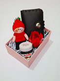 شامل کیف جاکارتی مگنتی مردانه، جا کلیدی عروسک مردانه، شکلات نوتلا، گل لمسی، پوشال بهمراه جعبه کادویی