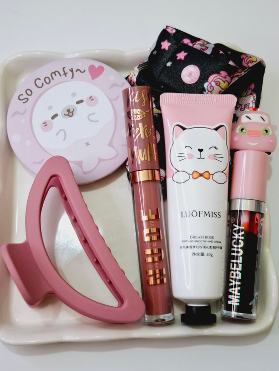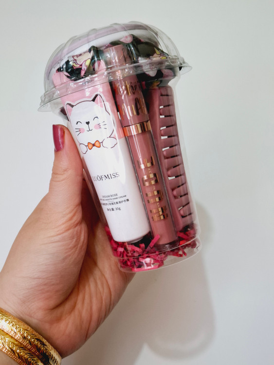 شامل رژلب مایع ۲۴ساعته ضدآب هدی بیوتی، اسکرانچی ساتن باکیفیت، کلیپس سایز بزرگ، کرم مرطوب کننده، تینت لب عروسکی، آینه فانتزی عروسکی وارداتی، پوشال بهمراه طلق آیس پک
