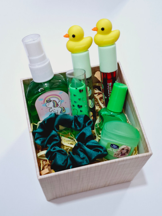 این باکس شامل برق لب و تینت لب فانتزی عروسکی، عطر بیک.ینی، لاک ناخن، کش مو، بالم لب فانتزی، نرم کننده لب باربی وازلین، پوشال بهمراه جعبه کادویی