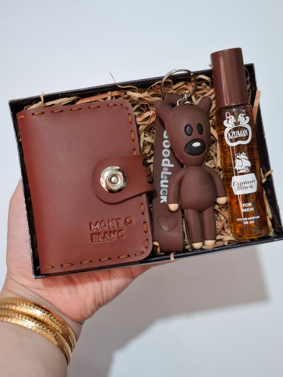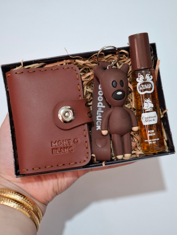 این پک شامل کیف جاکارتی باکیفیت، عطر قلمی شیشه ای، جاکلیدی باکیفیت، پوشال بهمراه جعبه کادویی