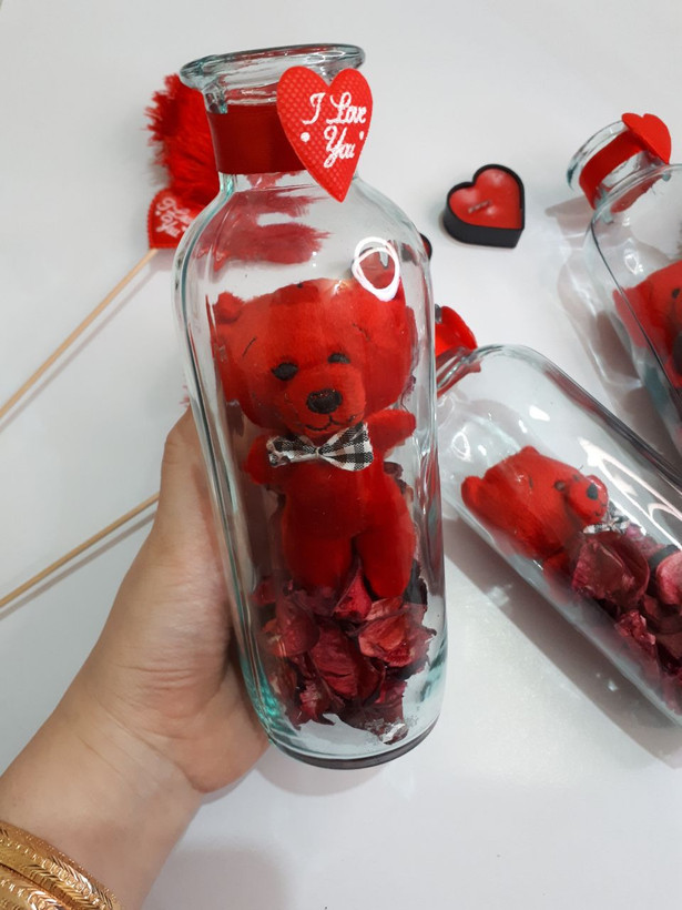 بطری کادویی شیشه ای مخصوص هدیه شیشه بلند و خرس کادویی