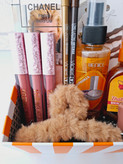 این باکس شامل ادکلن جعبه دار کوکو چنل با پخش بوی عالی و ماندگاری بالا، هدبند کبریتی، کیف ۲عددی آرایشی طرح بابونه، پک گیره مو، مداد چشم شمعی رنگی ۲عدد، کلیپس پشمالویی، عطر، لاک ناخن اسنس، بادی اسپلش، پک ۳تایی رژلب مایع ضدآب کوین کوکو، پوشال بهمراه جعبه کادویی