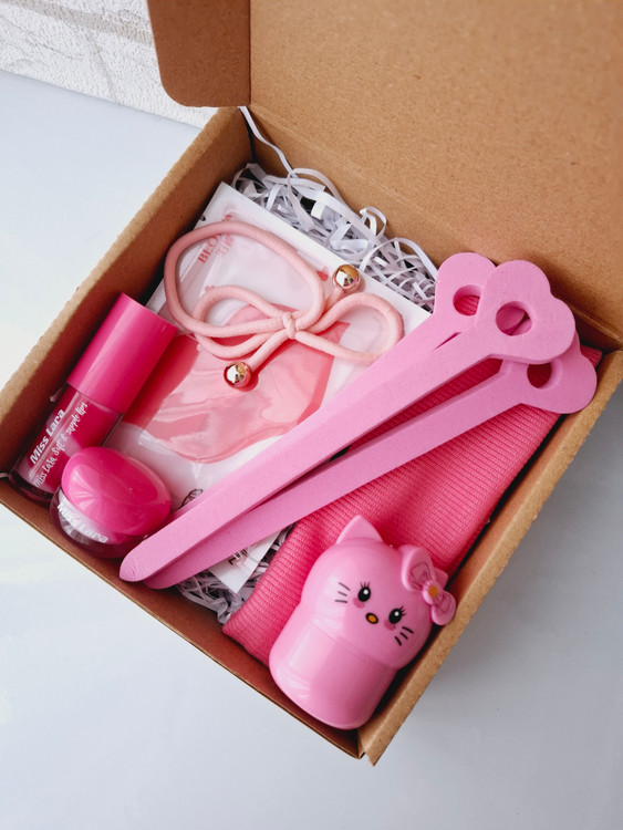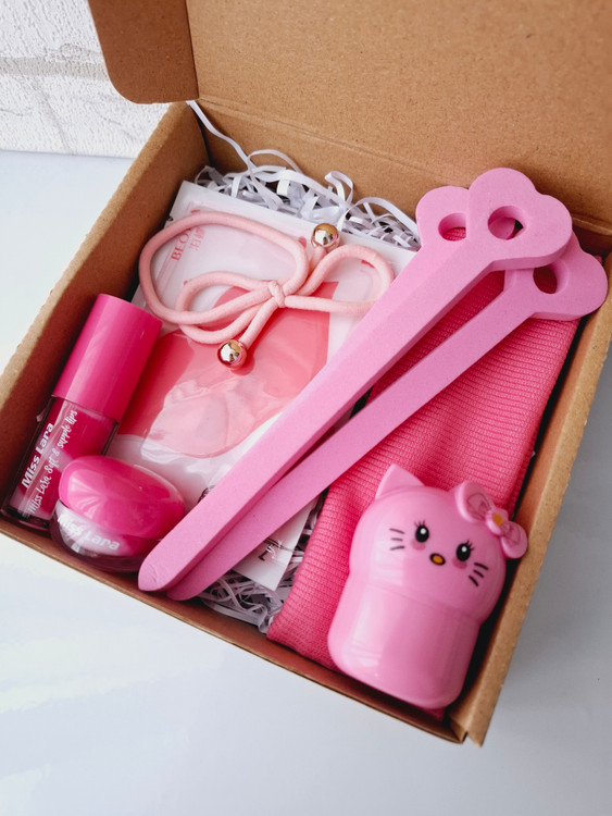 این باکس شامل بستنی لب، ماسک لب، کش مو، بیگودی فومی، هدبند کبریتی، لیپ مود فانتزی کیتی، پوشال بهمراه جعبه