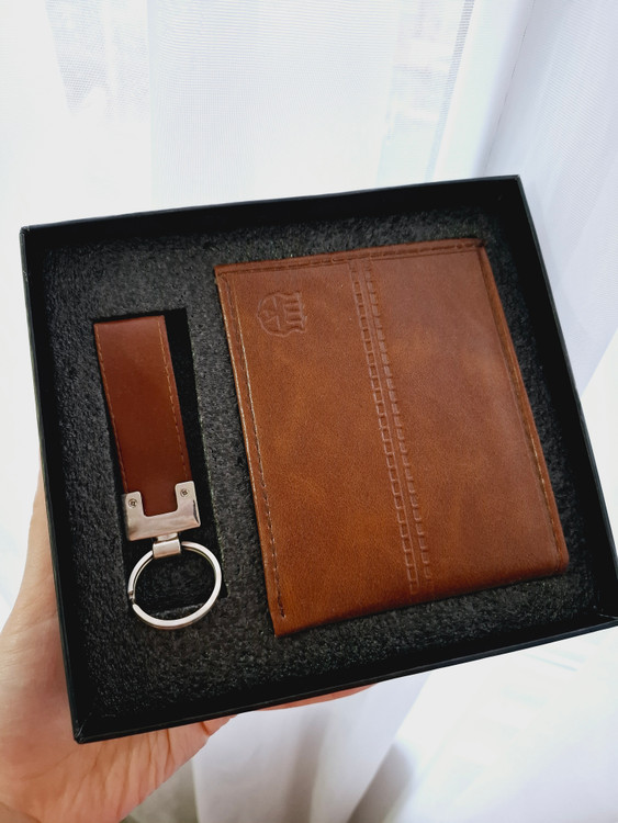 شامل کیف پول چرم باکیفیت، جا سوئیچ استیل بند چرم مردانه بهمراه جعبه شیک