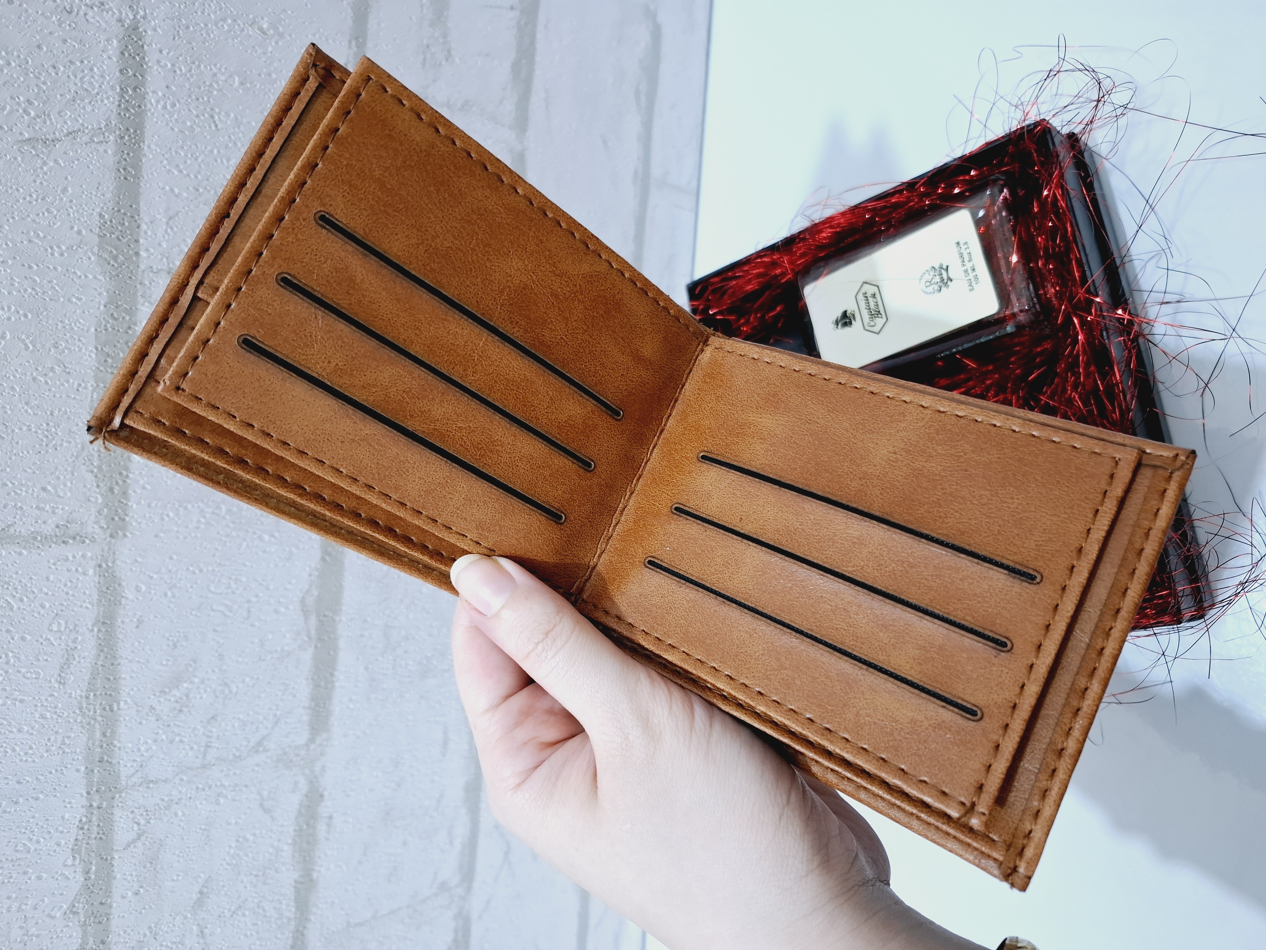 این باکس شامل کیف پول چرم طبیعی مردانه بهمراه فندک خاص و شیک، ادکلن جعبه دار ۱۰۰میل رایحه کاپیتان بلک بهمراه جعبه کادویی و پوشال