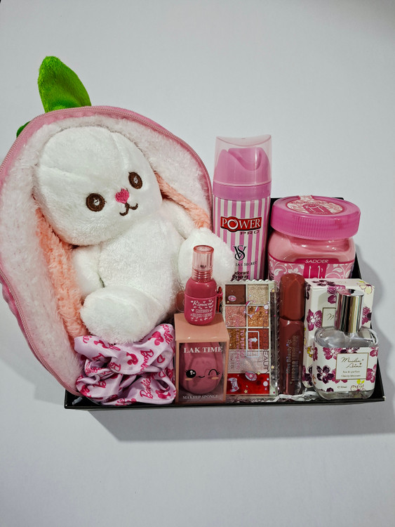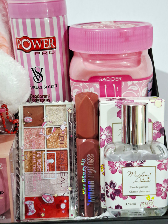 عروسک سورپرایزی توت فرنگی، کره بدن یارا، پلت سایه ۸رنگ، کش مو، اسپری بدن، رژلب مایع ۲۴ساعته ریموکو، پد میکاپ، رژلب مایع ۲۴ساعته کیس بیوتی، ادکلن جعبه دار با پخش بوی عالی و ماندگاری بالا، پوشال و جعبه کادو