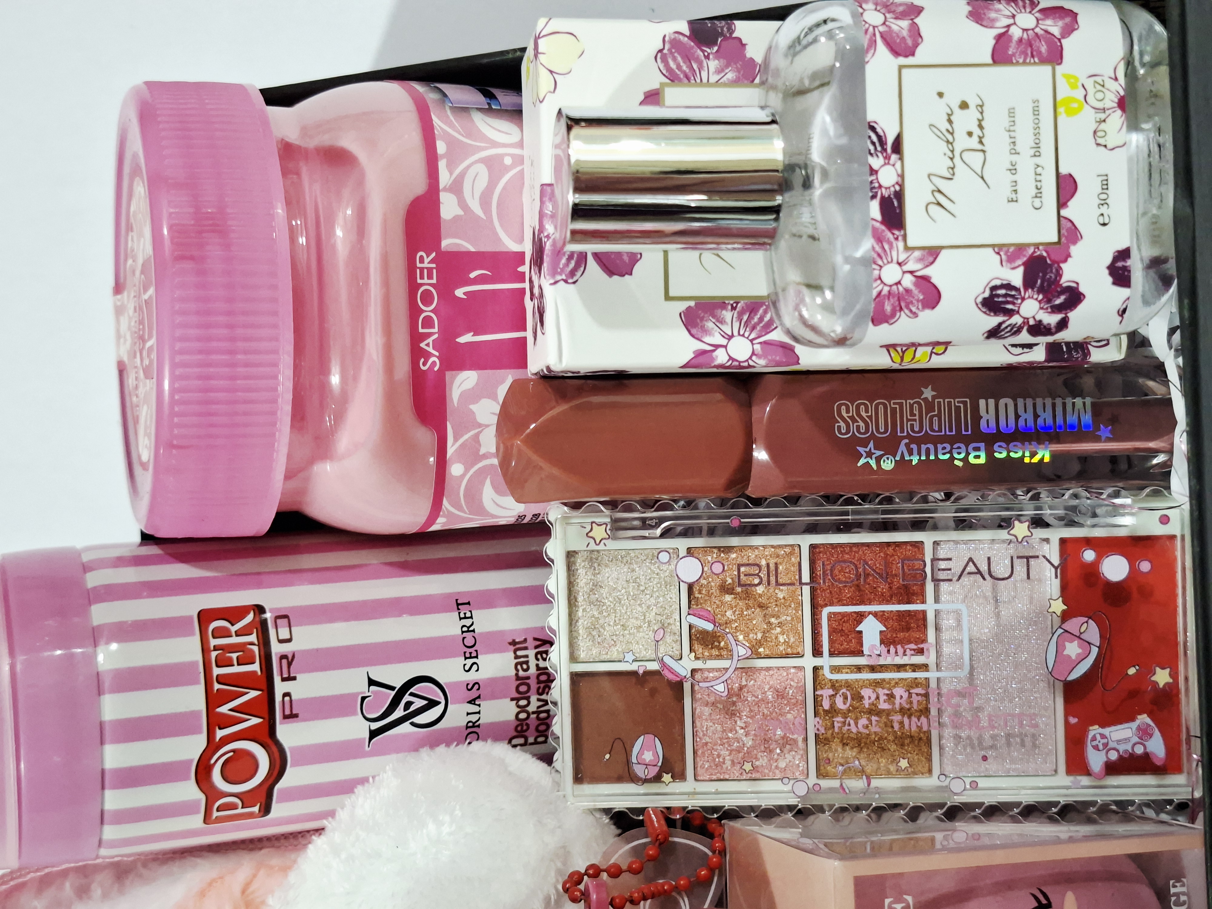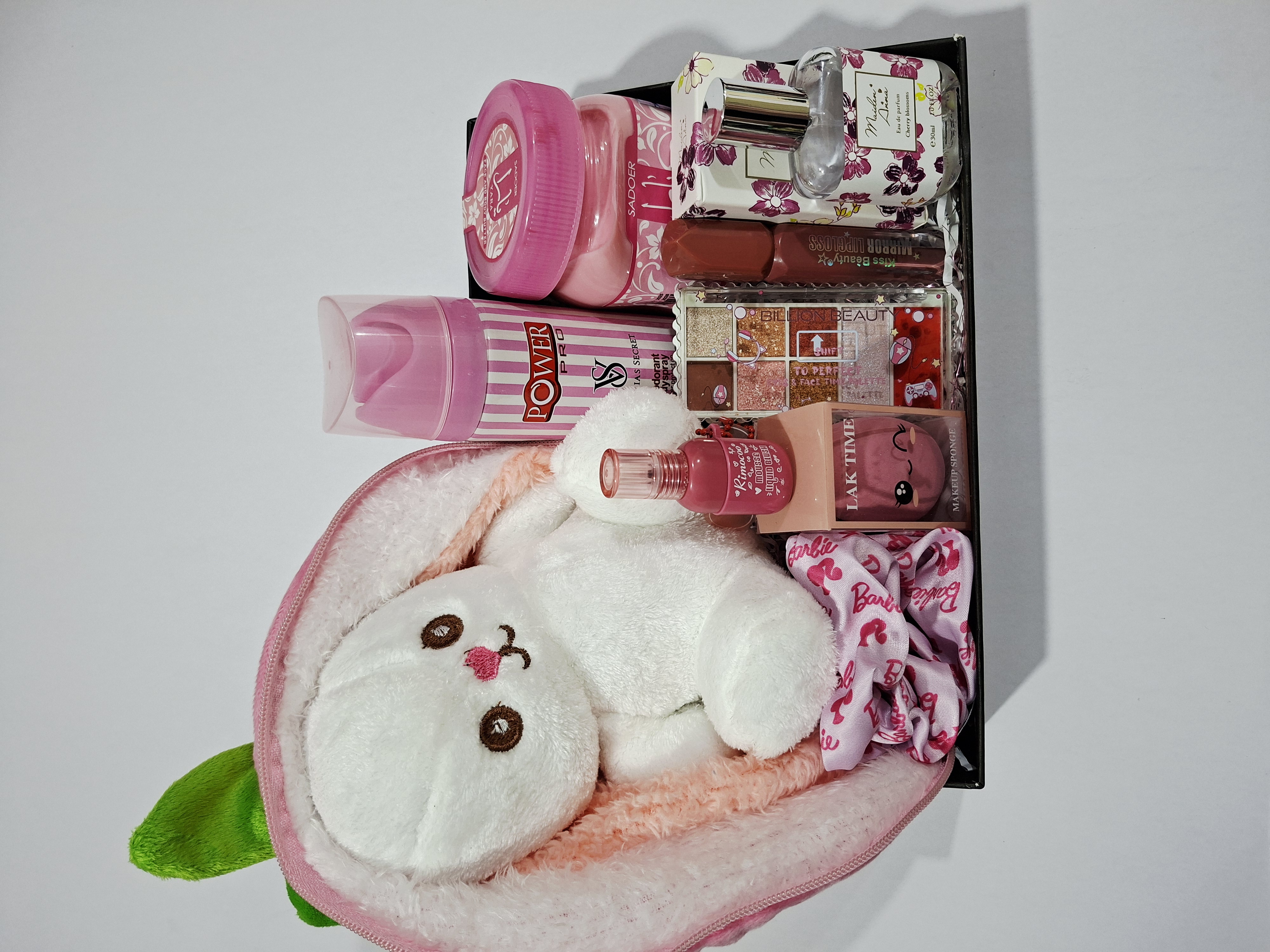 عروسک سورپرایزی توت فرنگی، کره بدن یارا، پلت سایه ۸رنگ، کش مو، اسپری بدن، رژلب مایع ۲۴ساعته ریموکو، پد میکاپ، رژلب مایع ۲۴ساعته کیس بیوتی، ادکلن جعبه دار با پخش بوی عالی و ماندگاری بالا، پوشال و جعبه کادو