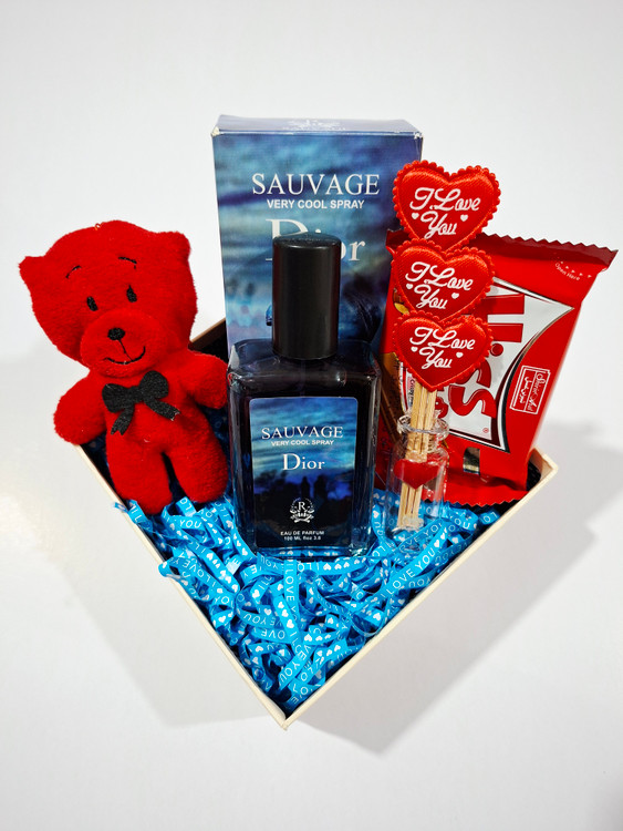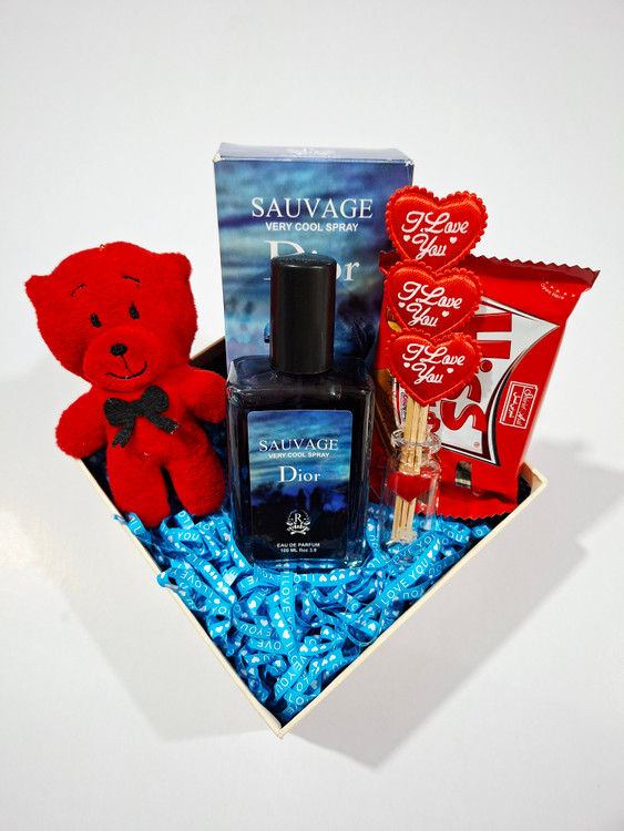 شامل ادکلن ۱۰۰میل ساواج جعبه دار، یک عدد عروسک خرسی، یک عدد شکلات کاکائویی، شیشه عشق و جعبه کادو و پوشال
