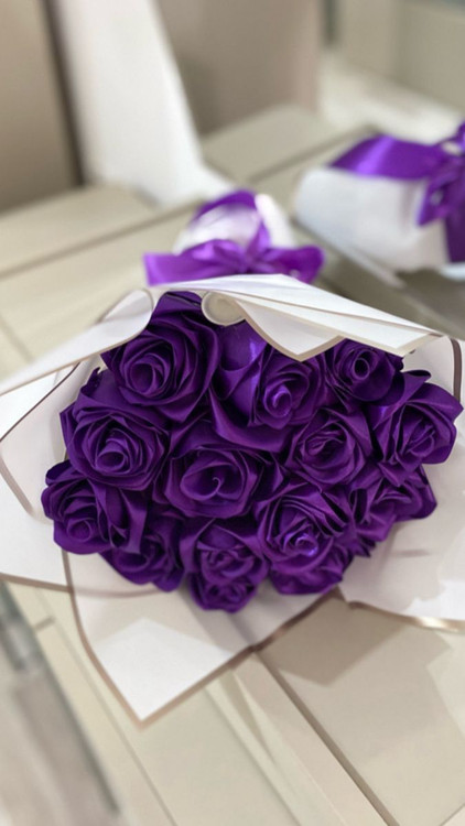 دسته گل رز مصنوعی ۱۷شاخه رز روبانی دسته گل ولنتاین
