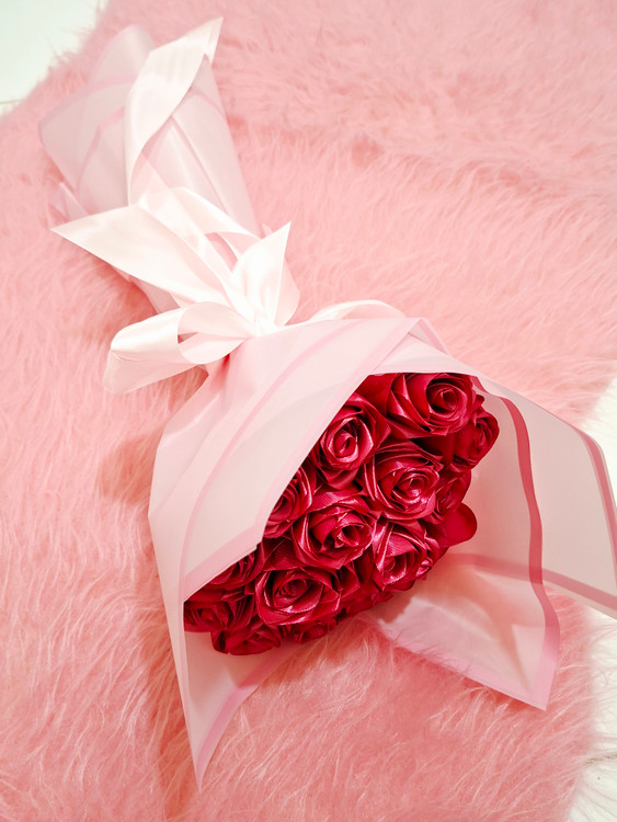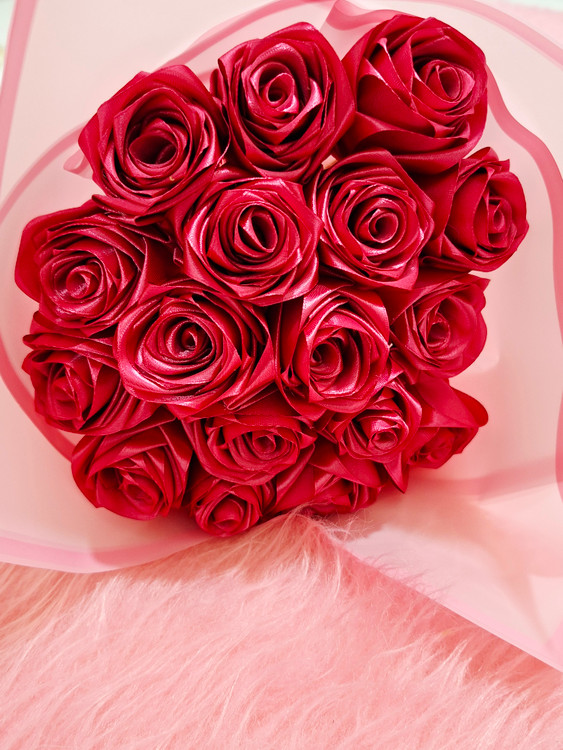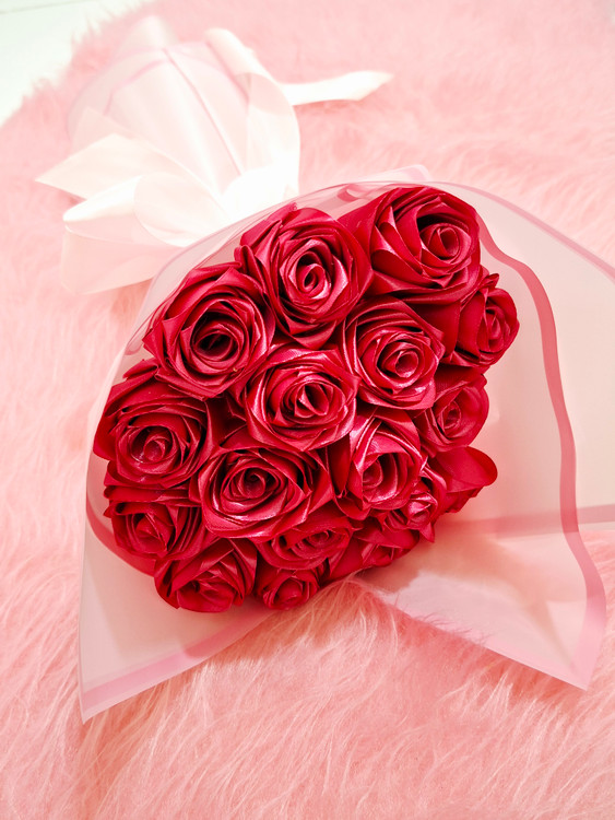 شامل ۱۷ شاخه گل رز روبانی بهمراه تزئینات🎀🌹