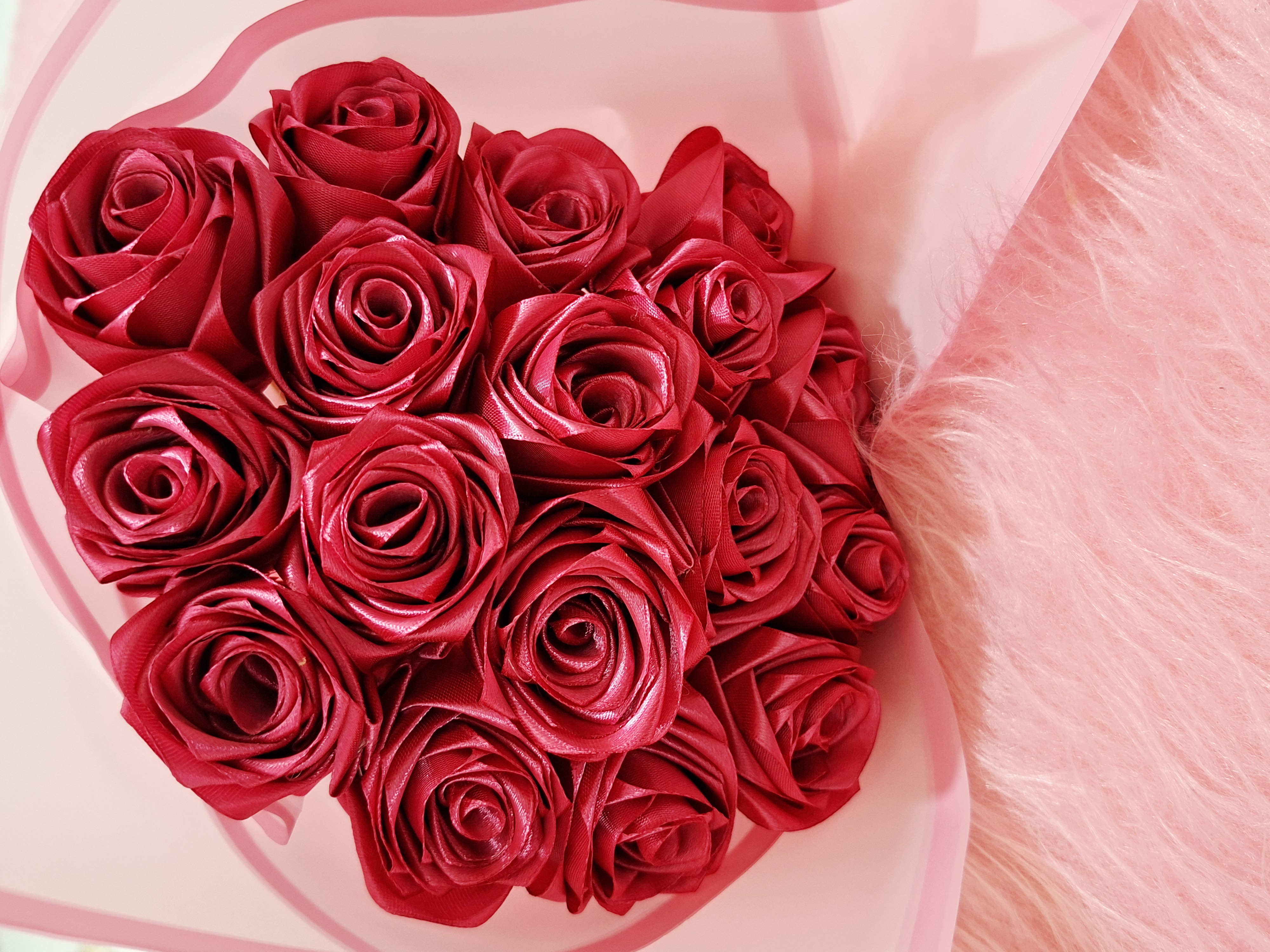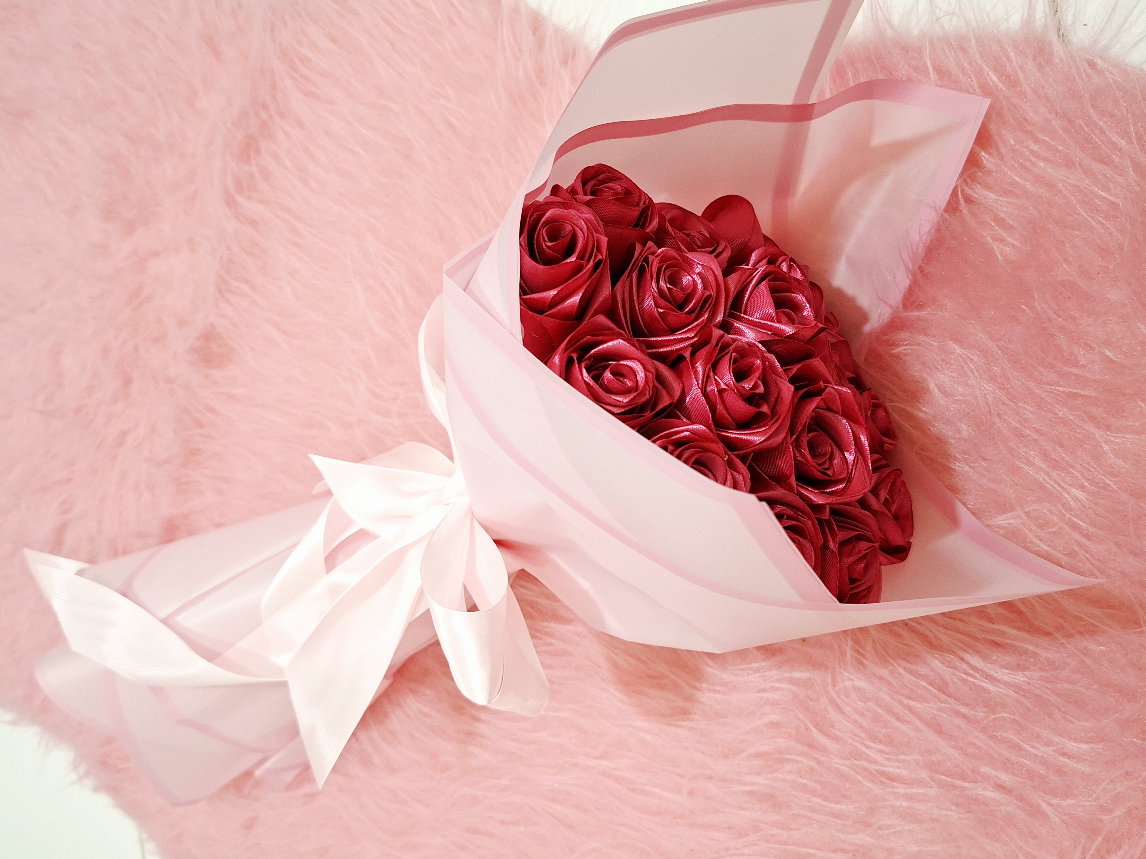 شامل ۱۷ شاخه گل رز روبانی بهمراه تزئینات🎀🌹